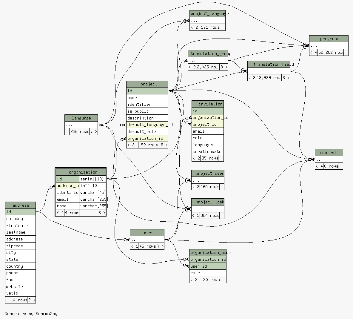 Table: organization